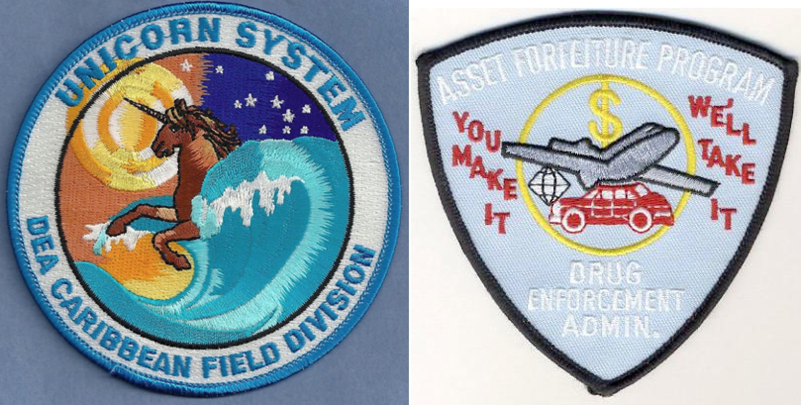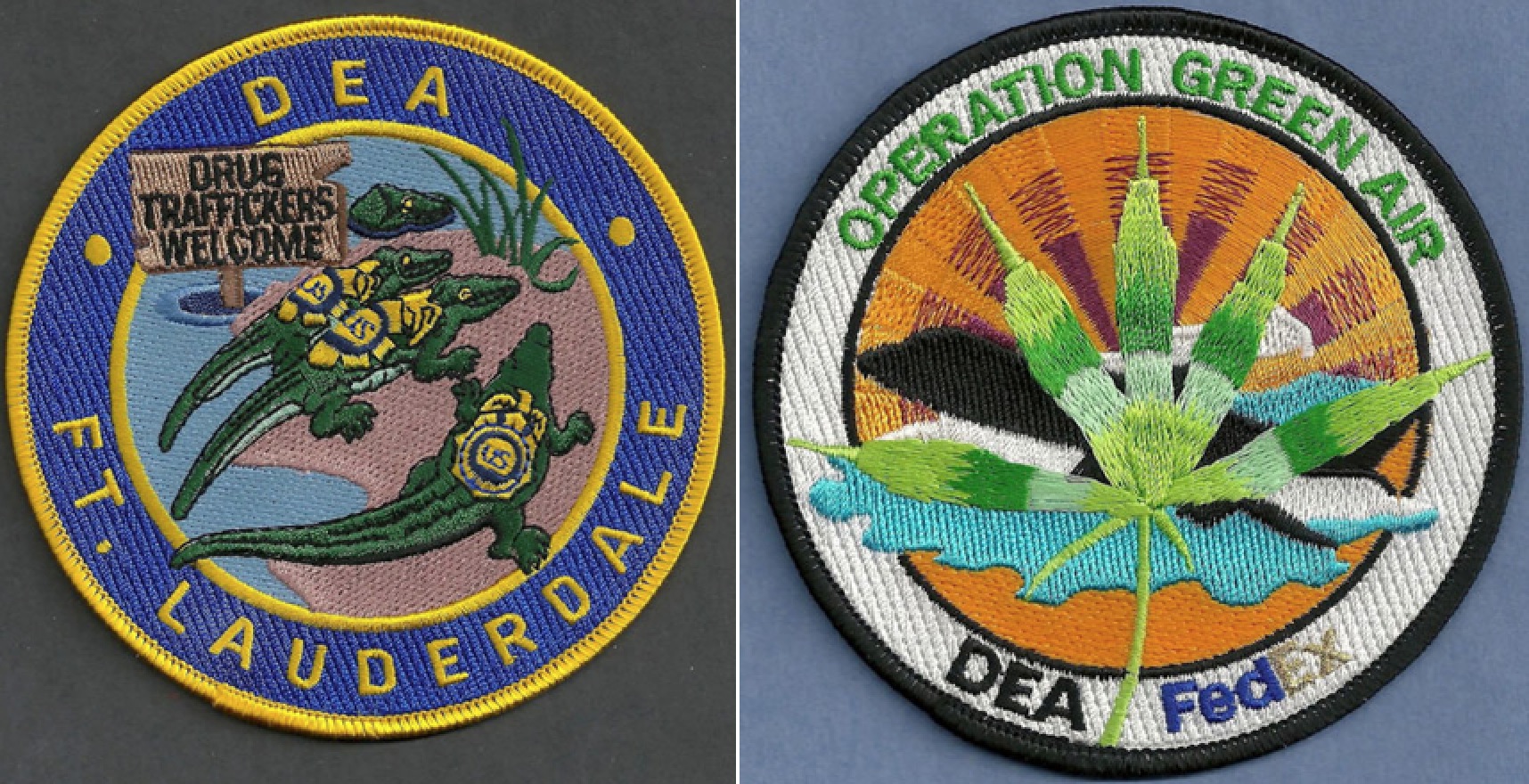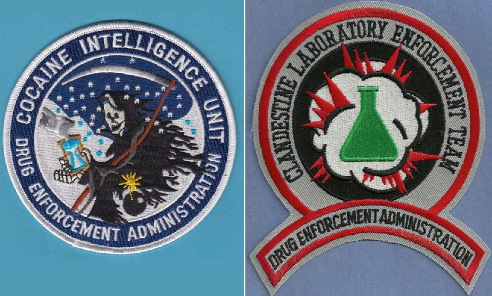Purportedly genuine official drug enforcement agency patches – available to buy on eBay and Fred’s.