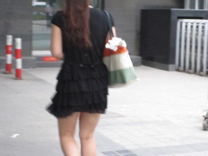 Same street as the Tricolour skirt (post here, scroll down) following day. Starting to wonder if this is a new Chinese fashion. Sorry ’bout the blurry surreptitious photo!