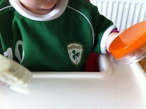 The noisier younger child with the remnants of Friday night’s takeaway.