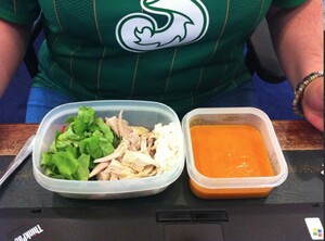 Defiant Tricolour about to be eaten in a Sushi bar in Dubai.