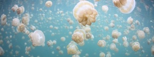 Twelve thousand years ago, these jellyfish became trapped in a natural basin on the island when the ocean receded. With no predators among them for thousands of years, they evolved into a new species that lost most of their stinging ability as they no longer had to protect themselves. They are pretty much harmless to humans although some people with very sensitive skin may get a minor irritation from them.