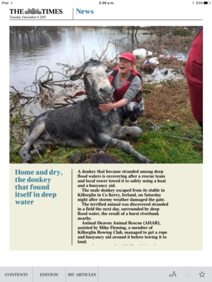 Donkey saving heroics in Killorglin, County Kerry at the weekend by Animal Heaven Animal Rescue and Mike Fleming of Killorglin Rowing Club.