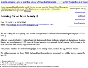 Outgoing? Kind-Hearted? Unfertilised Ova Weighing You Down? Admin at 12:41 pm August 30, 2011 Toronto Craigslist (Thanks Brian R) FacebookTwitterPinterest