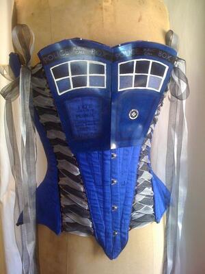The TARDIS corset – a sexy trans-dimensional work-in-progress by costumer Nikki Cohen of MayFaire Moon who sez: