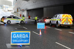 Member of the Defence Forces – responsible for overseeing detentions – wait to escort coaches for passengers from high risk countries to nearby hotels for mandatory detention.