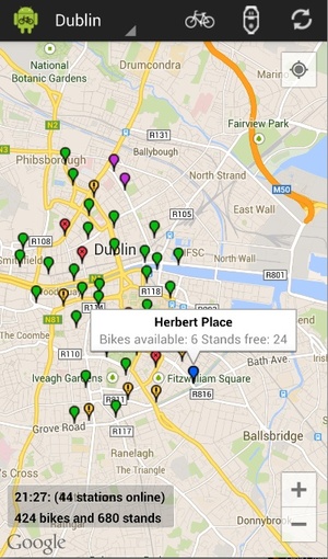 An Android app showing real-time availability of Dublin Bikes.