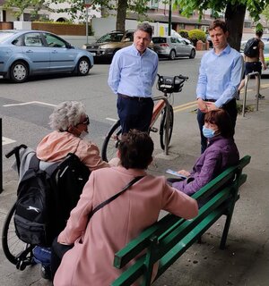 Fine Gael’s Dublin Bay South by-election candidate James Geoghegan (right) and Minister for Finance Paschal Donohue canvassing last Saturday in Sandymount, Dublin 4; Eamonn Kelly