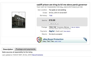 The Most Batshit Insane eBay Listing You’ll See Today Niall Murphy at 3:00 pm October 6, 2010 Is the governor of Cardiff prison putting implants in prisoners? Did Marcus Williams steal Officer Steven’s car? Who spells words this way? WTF? Check out the full stream of consciousness listing here. Via Twitter user Cianha FacebookTwitterPinterest