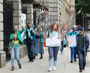 The parade is currently marching from the Garden of Remembrance to Dail Eireannand included members from Extinction Rebellion Ireland, the Irish Wildlife Trust, marine conservation group Sea Change.