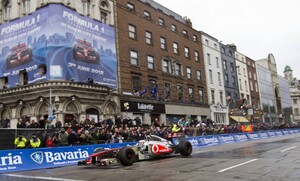 Hi folks – here’s a Formula One video I took for you up close at College Green [Dublin] earlier. Jenson Button half-spins his Formula One McLaren and performs a practice start.