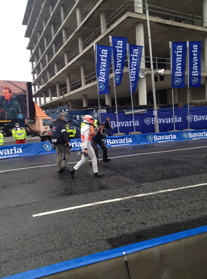 Jenson Button walking “back to the pit after his car went on fire outside the Anglo Building……. There’s probably a joke here somewhere but I can’t think of one.”