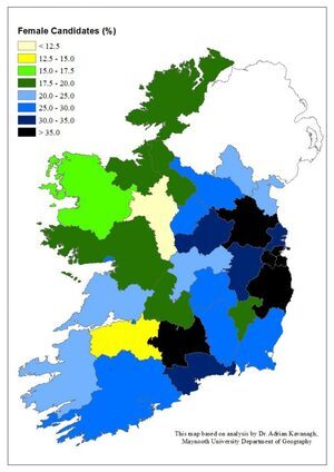 Female Local Election Candidates: There’s a notable “geography” to female candidacy levels across the Republic of Ireland, with *higher levels in Dublin and more urban areas *lower levels in rural Ireland but particularly in the more western counties #LE19