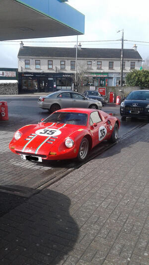 Spotted in Clane, Co Kildare, today, it really brightened up my day. As far as I can tell it’s a Dino 246 GT (made between 1967 [year of my birth :)] and 1974). not sure if it is original or kit, but still a lovely eye-catching beauty. No idea if the markings are genuine and mean something, or are symbolic, and mean something else :)