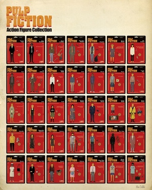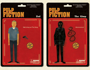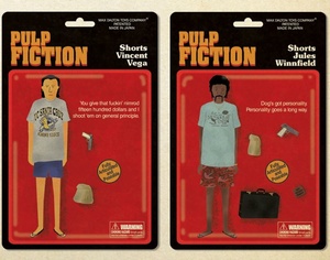 Illustrator, Maxim Dalton’s poster (for an upcoming exhibition at New York’s Bold Hype Gallery) featuring the as-yet pulp-fictional Pulp Fiction collectible action figurine set.