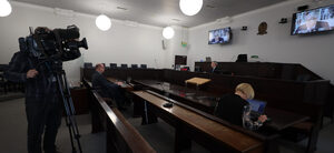 The cases were displayed on video screens in largely empty courts for members of the media present.