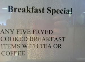Taken at Jordanstown University of Ulster, in one of their many rip-off food outlets. What hope Ulster’s brains, with signs like this?