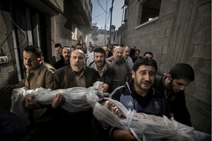 Throughout the past five days the sound of explosions has reverberated across theGaza Strip. As I write this, the buzzing of drones is constantly overhead. People are cowering in their homes, as there is no predicting where a missile might hit next, and threats of an imminent ground invasion are bringing back awful memories of Operation Cast Lead less than four years ago, in which more than 1,100 civilians were killed.
