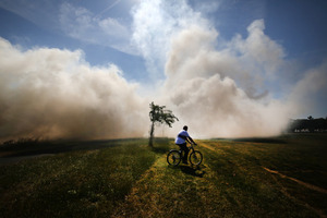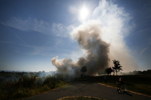 This gorse fire going strong near Sally Gap [Co Wicklow] had to turn back on the bike due to heat and smoke…