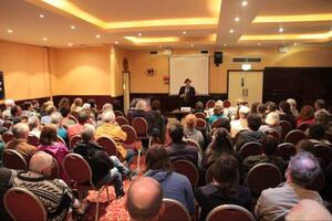 Greg Palast with his trusty ironic pose in The Bush Hotel, Carrick on Shannon, bringing the hazards of fracking to a full house last night. That man in the foreground had a full head of hair before the talk.