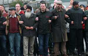 Gerry Adams visits workers locked out of the Greyhound plant in Clondalkin Dublin this afternoon.
