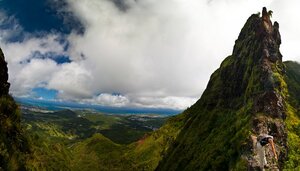 Hiking (crawling, tip-toeing – call it what you will) along the ridiculously narrow Pali Puka ridge in Oahu: a trail with huge drop-offs on either side.