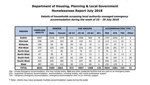 New Department of Housing figures show there were 6,024 adults, 1,778 families and 3,867 children staying in emergency accommodation in July.