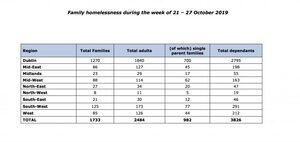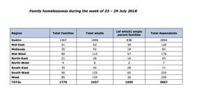 “While the number of family presentations nationally in August has increased by 13 overall, the figure for Dublin has fallen by 32.”