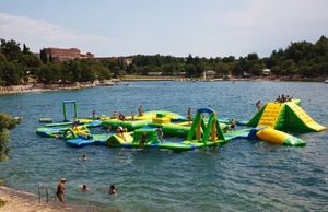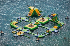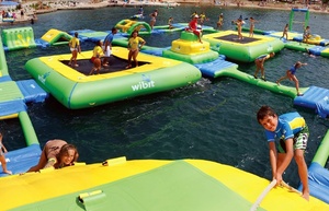 Behold: the Sports Park 60 from Wibit Sports. A 40m x 32m, 2 tonne inflatable waterpark for your private lake or Olympic-sized pool.