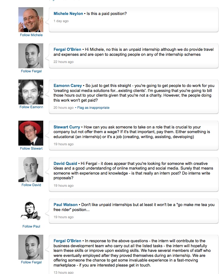 Look at this for an opportunity – work for free to improve your language skills. Even Joan Burton would be embarrassed by this…
