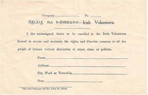 “Designed and worded” by Padraig Pearse and produced by “The Irish Volunteer” 65 Middle Abbey Street, Dublin.