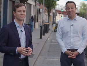 top from left: candidate James Geogehan, Tanaiste Leo Varadkar and Fine Gael campaign director and government minister Simon Harris