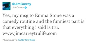 Jim Carrey’s lovelorn lolwut to actress Emma Stone (23).