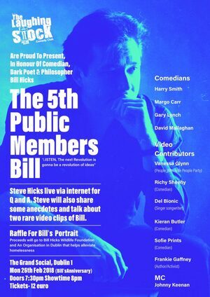 A tribute to comedian, singer songwriter, conspiracy realist, poet and philosopher Bill Hicks with our Johnny (yer man off de telly!) MC-ing.