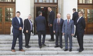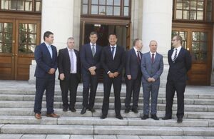 From top: new Fianna Fáil junior ministers Thomas Byrne (left) with Taoiseach Micheál Martin; Anne Rabbitte; Jack Chambers and Robert Troy (left) and Mr Martin