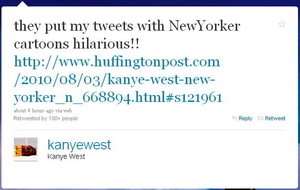 When Noob Tweeter, Kanye West got wind this week of the hilarious meme whereby his daft tweety utterences were being used to caption New Yorker cartoons much to the amusement of the Twitter community, he naturally tweeted about it.
