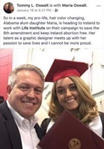 …But the thing is Maria’s father Tommy Oswalt (with Maria, above) says the reason why Maria is here for the next 3 months is to “work with the Life Institute on their campaign to save the 8th Amendment and keep Ireland abortion free”…