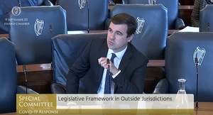 At the Special Committee Covid-19 Response, Labour TD Duncan Smith (top) had the following exchange with lockdown critic and retired UK Supreme Court judge Lord Jonathon Sumption (above).