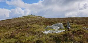 There are a number of megalithic monuments on the summit. Unfortunately the ‘Druid Order’ have recently damaged the large cairn by quarrying it to make a stupid shelter that they handily signed.
