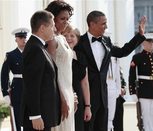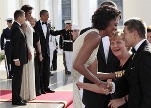 German Chancellor Angela Merkel at Trinity College Dublin this afternoon accompanied by Taoiseach Enda Kenny this afternoon.