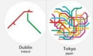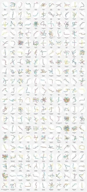 This poster shows 220 minimalist maps of metro systems around the globe. The Asian mega cities jump out at you…
