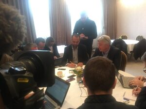 CEO of Ryanair Michael O’ Leary in front of one of his company’s Boeing 737-800 NGs aircraft after delivery of the first of 180 new 737-800 NGs in September, 2014