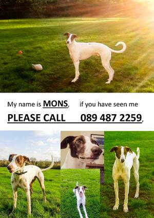 “Jess was feeding a litter of pups at time she went missing (following a vet appointment to treat infection arising from nursing pups, she needs medication for this). Her owner looked for her immediately and continuously and as she has not been found or seen and was not run over, we now consider her to have been taken/stolen. She is much loved by her human family (including a heartbroken child) and needed by her litter of pups. If you can help locate her please call her owner at 086 348 0234. If you are offered this dog for sale please contact Bray Gardai 01 666 5300. Somebody has this dog or knows where she is. Please help.”