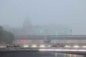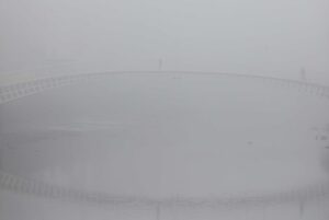 It’s a misty morning out there – the Liffey quays through the parapets on Mellows Bridge