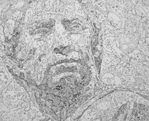 The Devils In The Detail Niall Murphy at 5:00 pm March 12, 2011 Tokyo artist, Keita Sagaki creates extraordinary pen and ink drawings of familiar works of art, composed of thousands of tiny improvised characters. Above: Brutus and Mona. Check out Keita’s complete portfolio here. via dudecraft FacebookTwitterPinterest