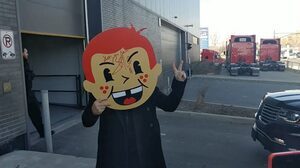 U2’s Bono chats with fans and endorses a local guy’s cartoon character Ruddy Lad.