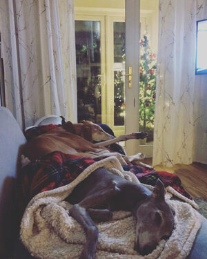 It’s kinda Christmassy no? End of day, sleepy seasonal hounds.