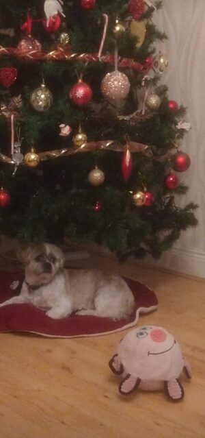 Sparky thinking: ‘My very own tree at last!’
