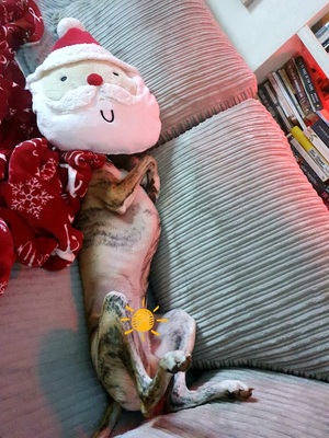 Dexter the Irish whippet looking forward to his first Christmas.