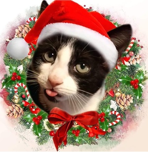 Our Kilkenny cat called Ziggy before and after his festive makeover…