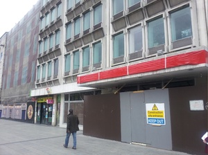 So this place on O’Connell Street is boarded back up again, & has the sign covered, story?